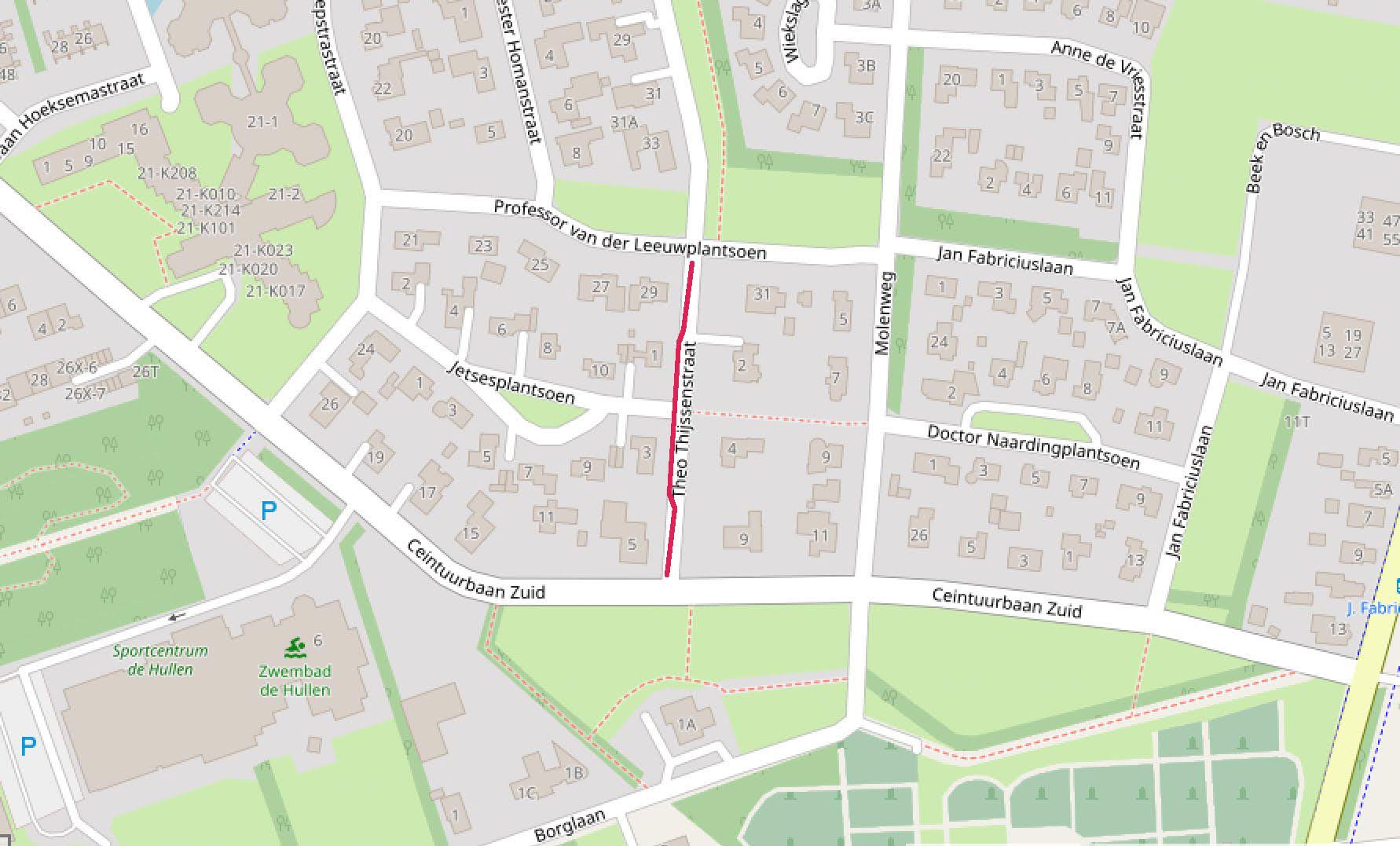 | Theo Thijssenstraat, Roden. (© OpenStreetMap-bijdragers) |